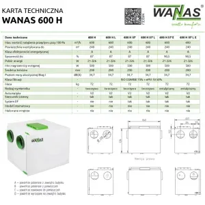Rekuperator przeciwprądowy WANAS 600 H
