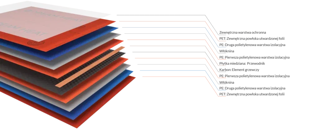– Folię Dream Heat tworzy mata grzewcza utworzona z połączenia włókna węglowego z pastą z karbonu. Mata pokryta jest dodatkowymi dwiema warstwami laminatu, tworząc łącznie 11 warstw, czyniąc produkt bardzo cienkim (tylko 0,7 mm) w porównaniu z klasycznym ogrzewaniem podłogowym.