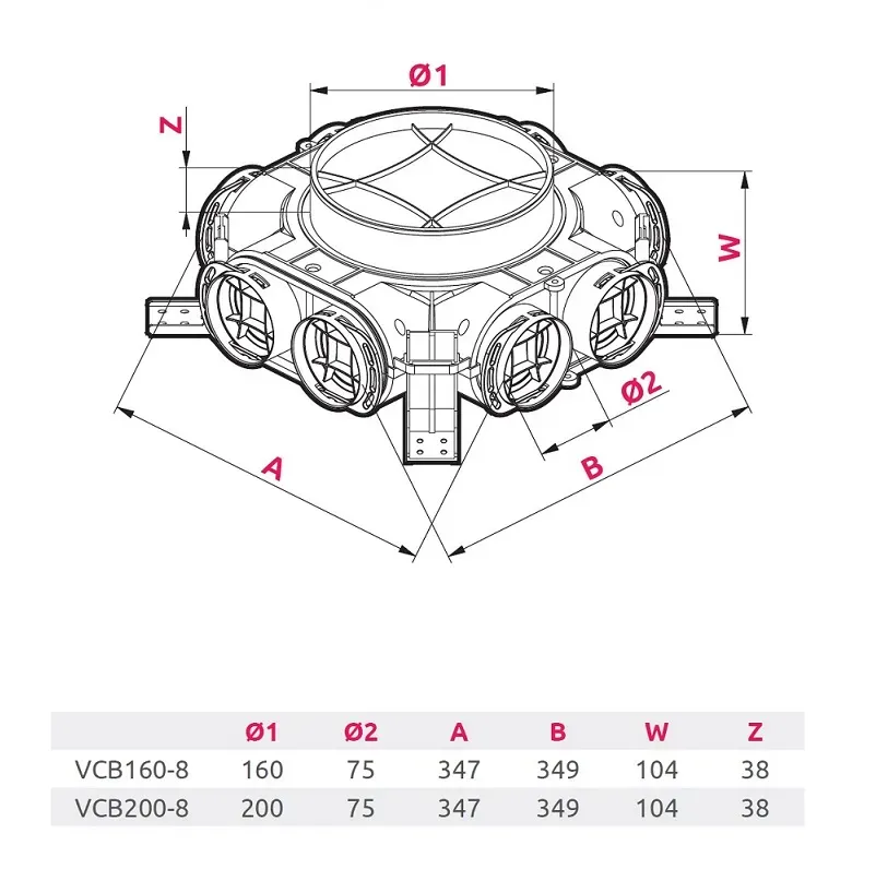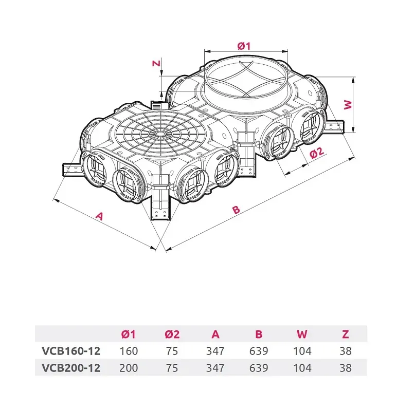 AWENTA PRO Skrzynki rozdzielcze VCB ⌀ 160 / 8,12 x 75