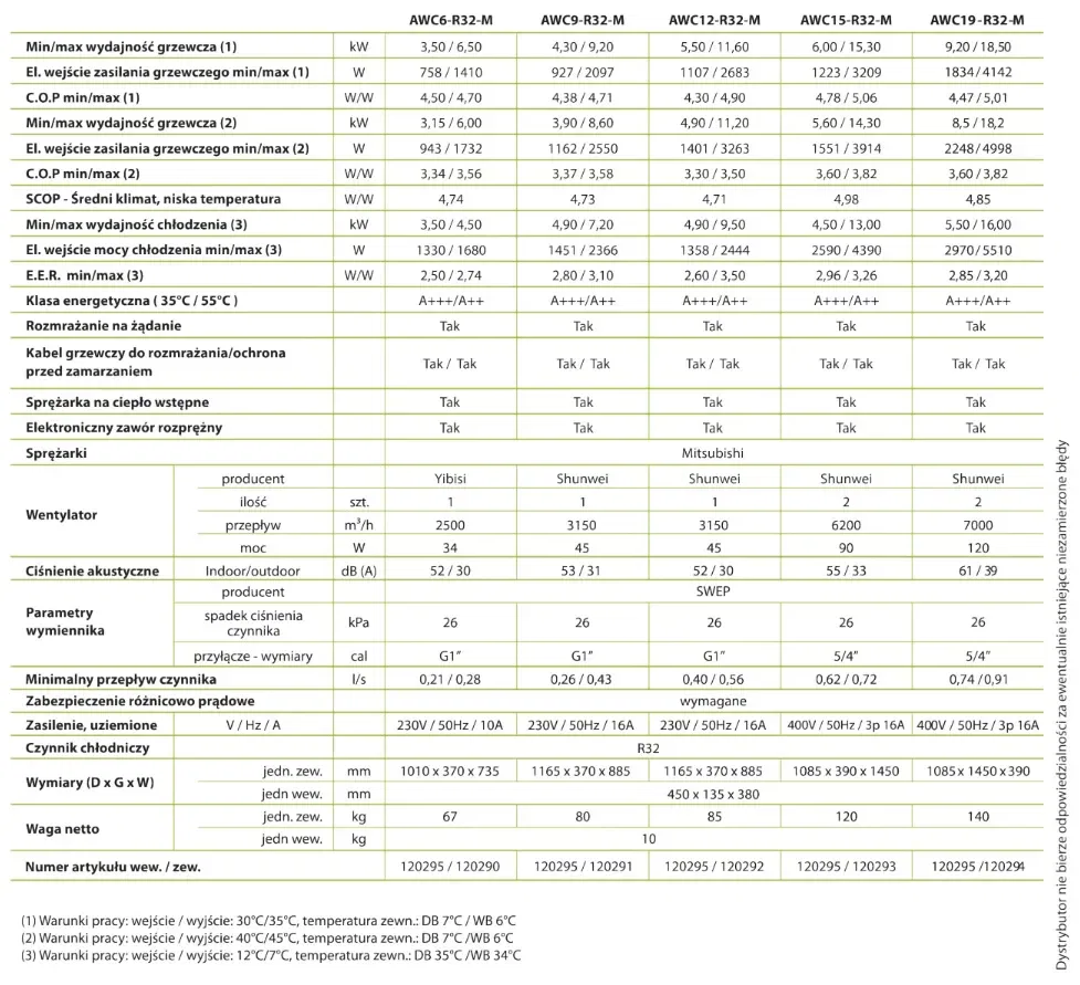 Ekonomiczne pompy ciepła typu powietrze-woda AWC-R32-M.