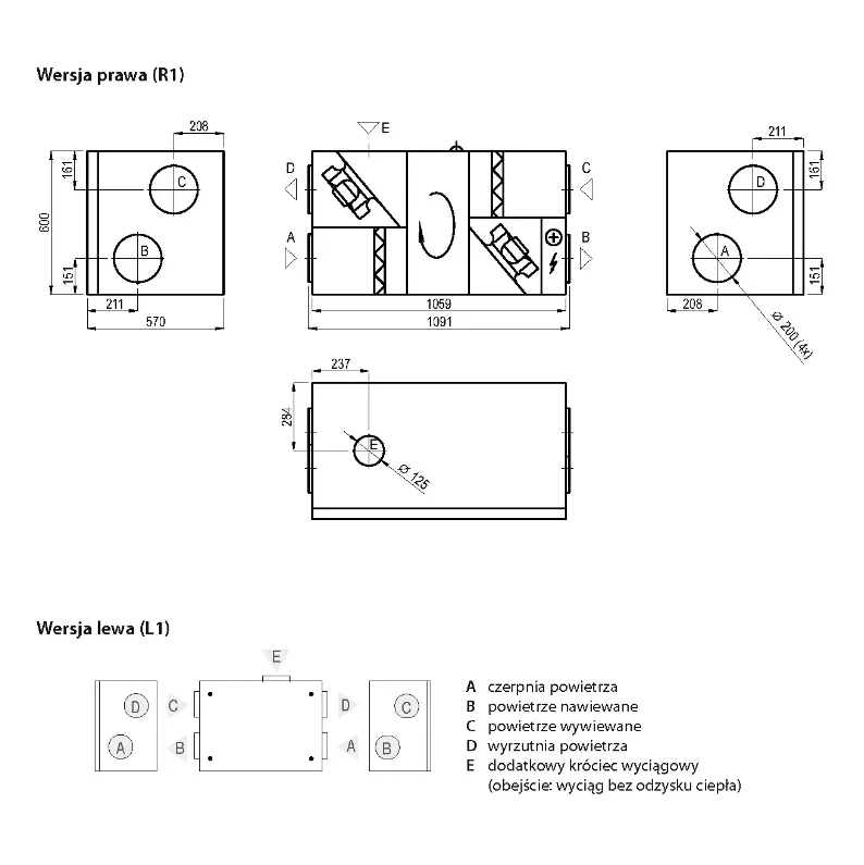 W przypadku, gdy temperatura zewnętrzna jest wyjątkowo niska, na poziomie -30°C lub mniej zaleca się stosowanie wstępnej, kanałowej nagrzewnicy powietrza – wyposażenie standardowe.
