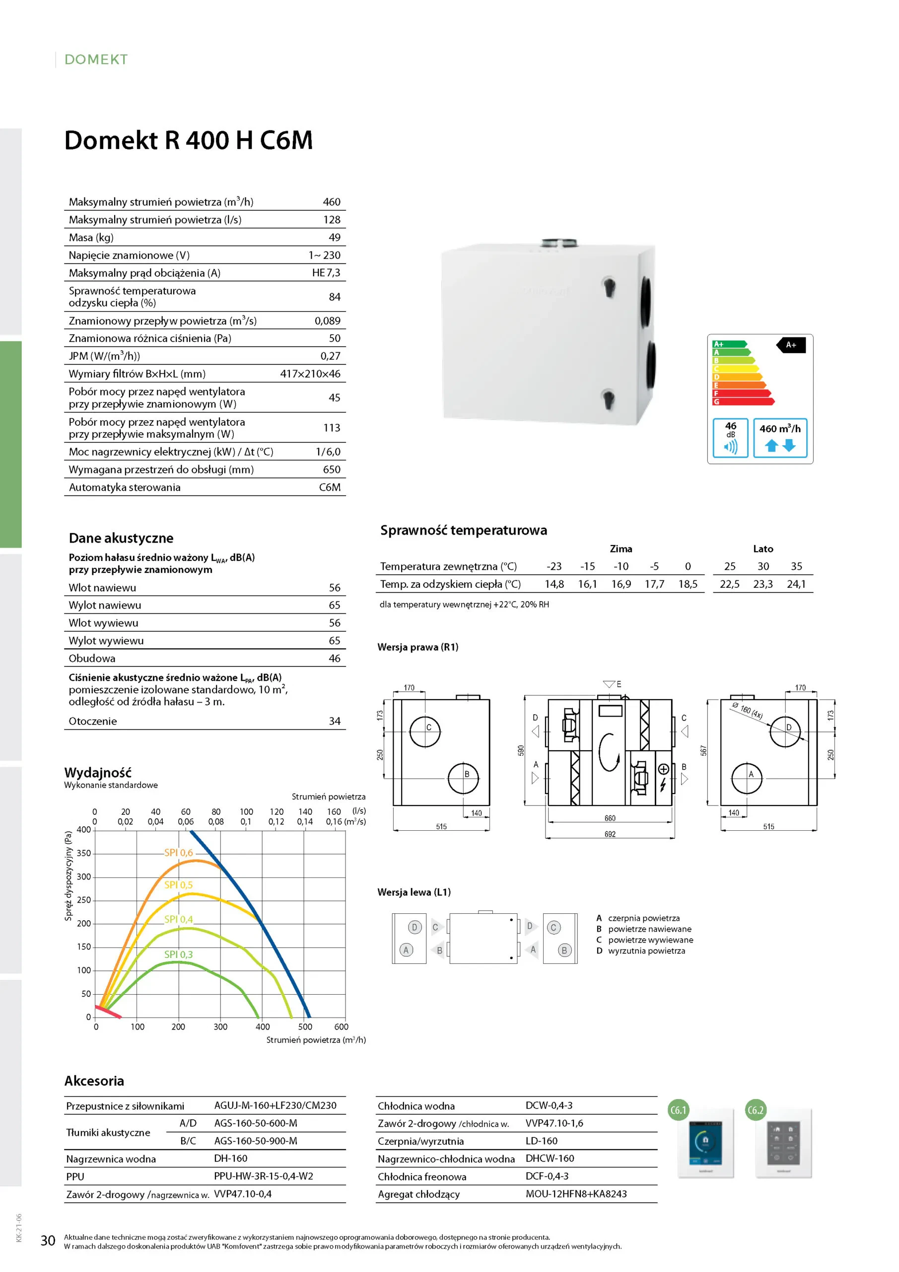 Funkcje i właściwości rekuperatora Komfovent Domekt H :