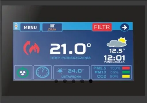 - – NOWOCZESNY STEROWNIK – zaawansowana automatyka pozwala precyzyjnie dostosować parametry centrali pod bieżącą instalację oraz panujące warunki pogodowe. Podstawowe funkcje automatyki centrali: