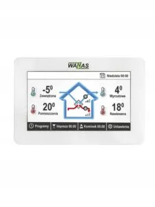 Każdy rekuperator standardowo wyposażony jest w tygodniowy dotykowy sterownik. Dodatkowo do rekuperatora można nabyć moduł WANAS MOBILE CONTROL W-15 lub WANAS MOBILE CONTROL W-19 Wi-Fi do zdalnego sterowania centralą przez Internet.